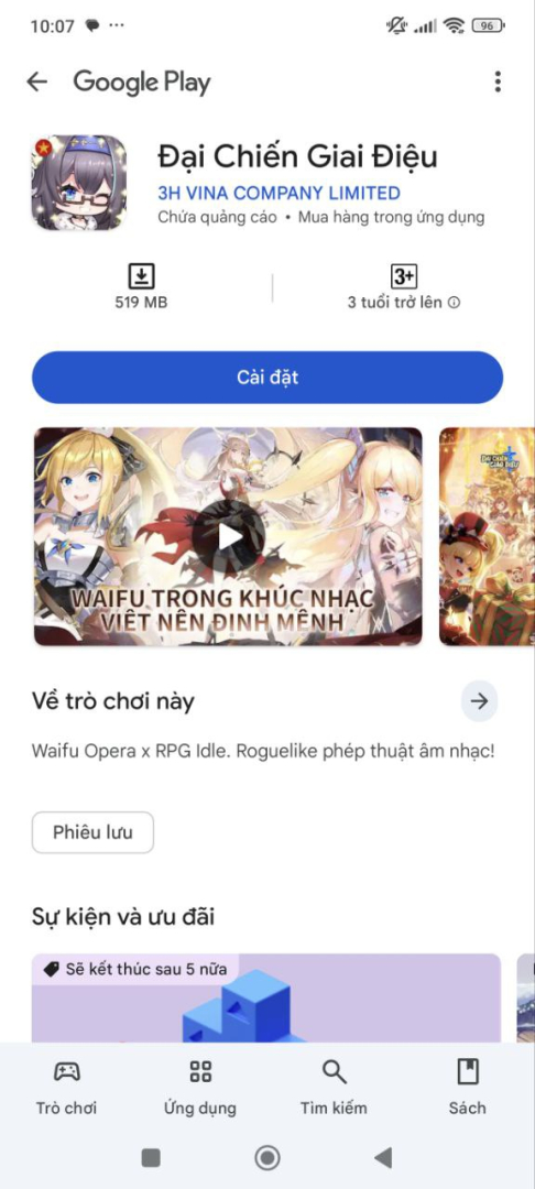 Bước 1: Chủ Nhân hãy truy cập vào Google Play trên Điện Thoại, tìm kiếm tên game "Đại Chiến Giai Điệu" hoặc bấm vào Link tải tại: ĐÂY;