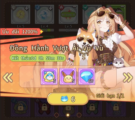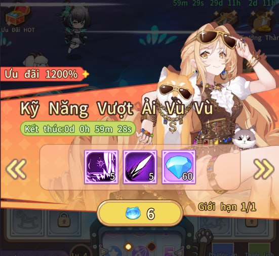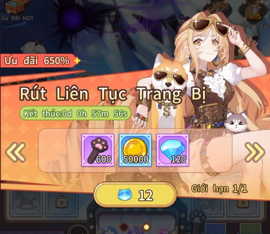 Khi đầu tư Gói Rút liên tục trang bị, các Chủ Nhân sẽ nhận ngay *600; Xu Mèo*50000; KC*120
