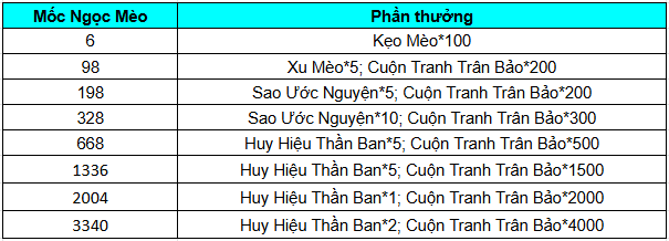 - Trong thời gian diễn ra sự kiện, Chủ Nhân tiến hành rút các gói Ngọc Mèo vào game từ web nạp: nap.zoneplay.vn đạt các mốc thưởng tương ứng sẽ nhận được thêm các phần thưởng;